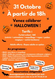 Pour ceux qui auront joué le jeu avec leurs déguisements, le parc restera ouvert de 19h à 21h pour un moment privilégié autour d’un apéritif convivial et d’une immense chasse aux bonbons 🍬.